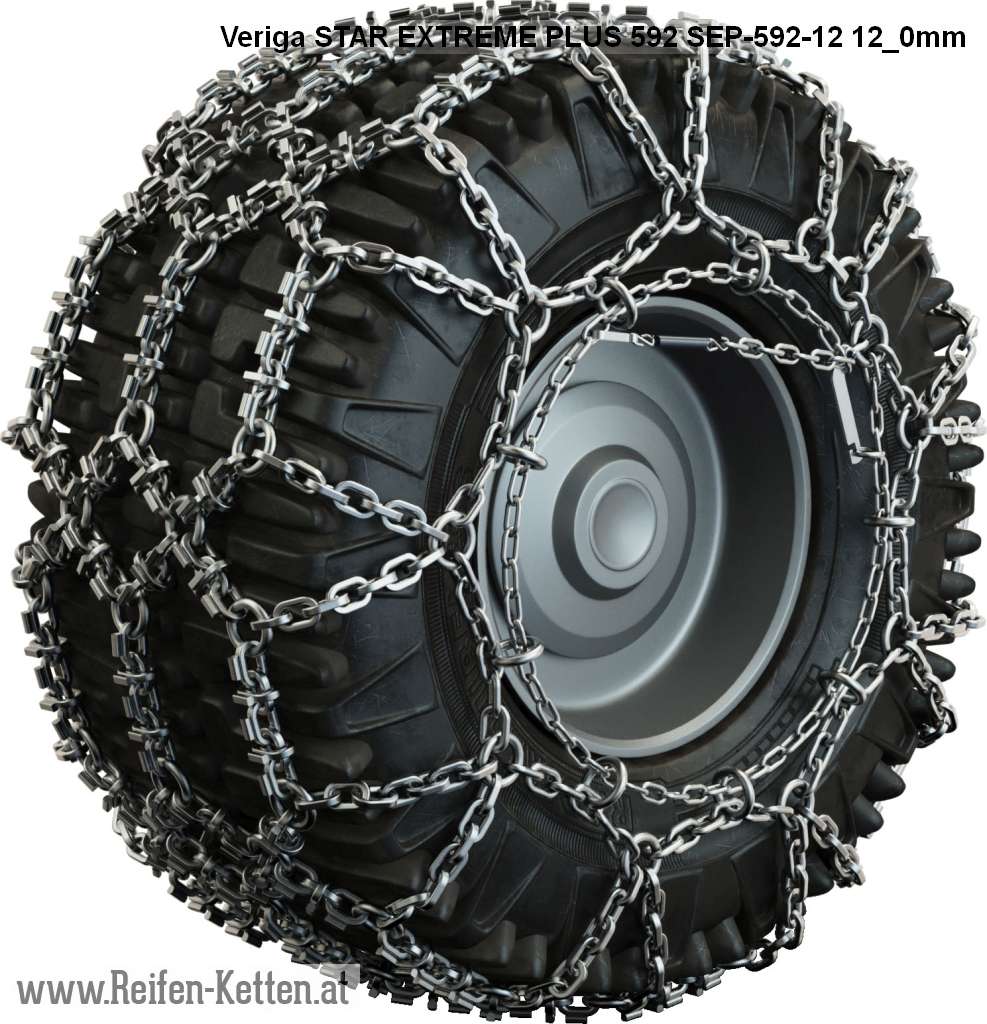Schneekette in einer doppelrautenförmigen dickeren Ausführung für extreme Einsätze mit verstärkten Kettengliedern und geschweißten Stegen speziell für anspruchsvolle und extreme Bedingung auf Eis und Schnee .