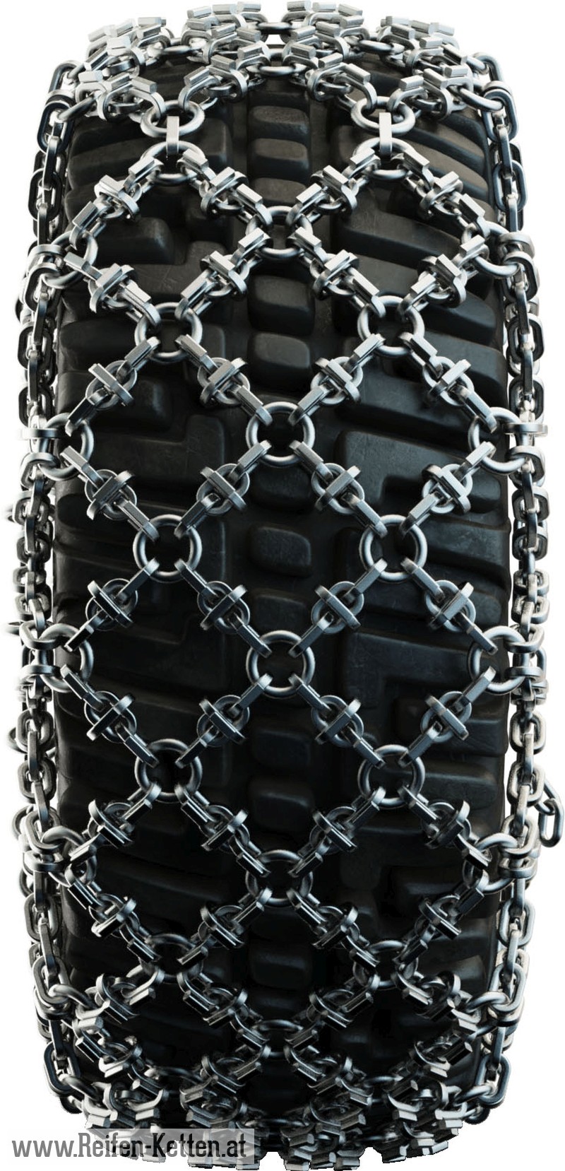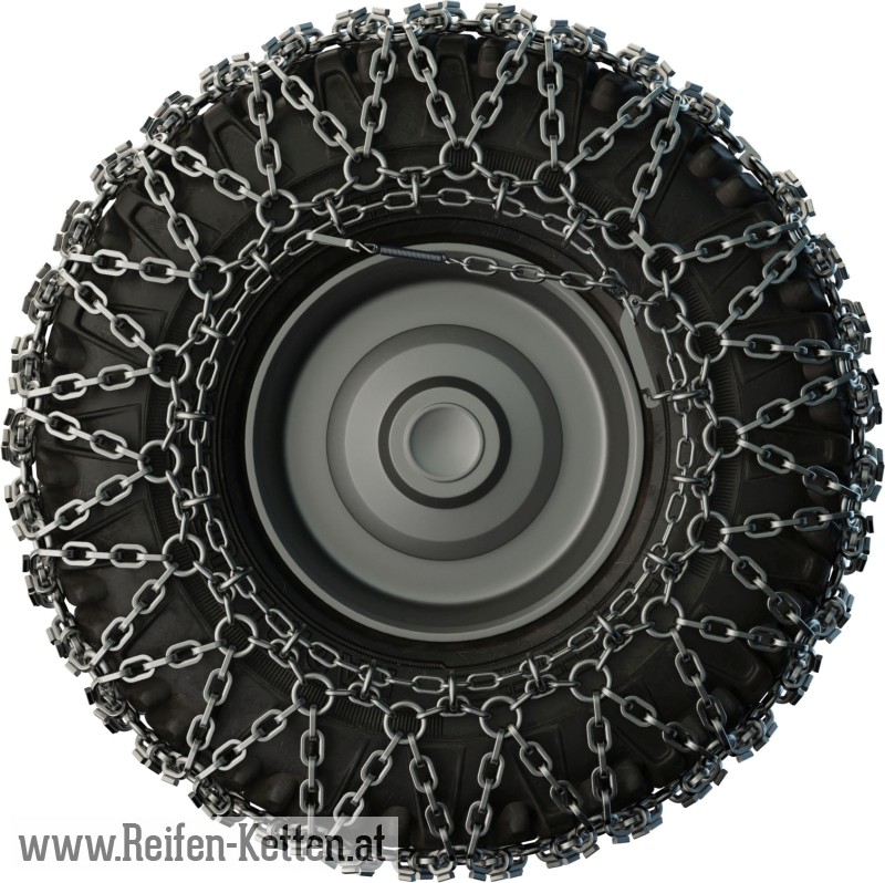 Kette in einer dichteren rautenförmigen Ausführung, für extreme Winterverhältnisse und Steinbrüche. Mit verstärkten Gliedern und geschweißten Platten, für einen anspruchsvollen und durchlaufenden Einsatz bei Schnee, auf Eis und in Steinbrüchen.