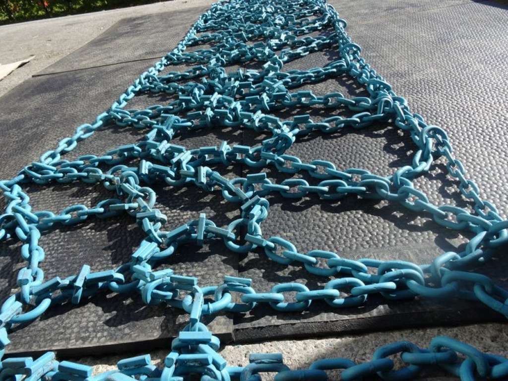 Netzkette mit Vierkantglieder mit 7mm Gliederstärke, Quergliedern und aufgeschweissten Verschleisstegen.