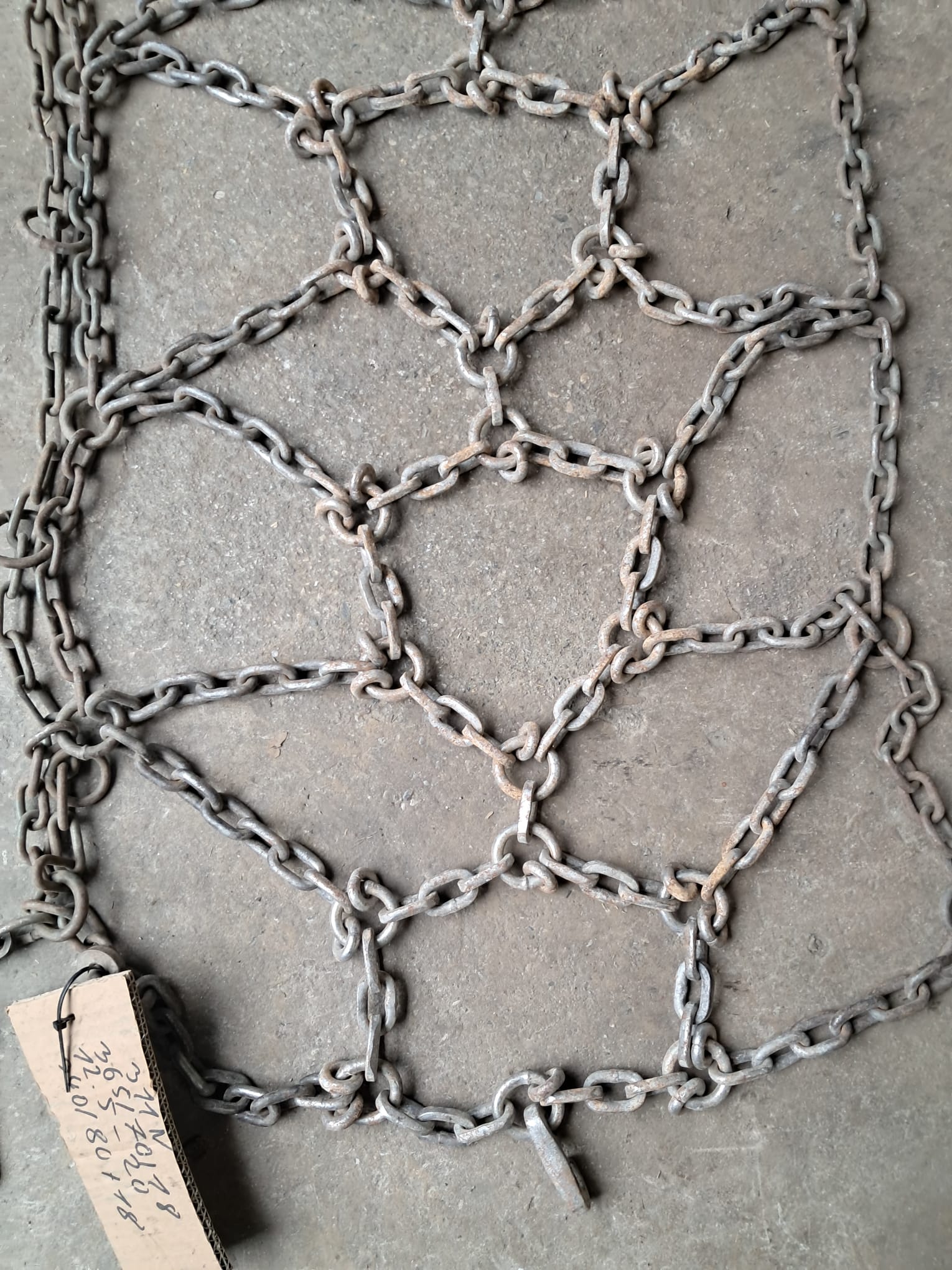 KWB311 Schneekette in der Dimension 365/70-18. Die Kette befindet sich in gutem Zustand, einige Glieder sind jedoch zu etwa 50 % abgenutzt. Ideal für leichtere Einsätze, bei denen zusätzliche Traktion auf Schnee oder rutschigem Untergrund benötigt wird.