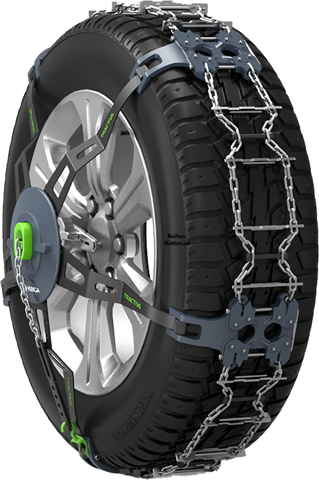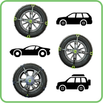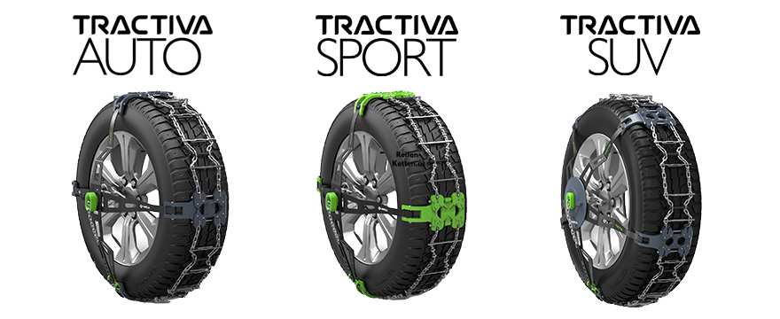 Durch die clevere Konstruktion der Tractiva sind nur 13 verschiedene Größen erforderlich, um fast die gesamte Bandbreite an PKW-Reifen abzudecken. Die richtige Auswahl wird somit zum Kinderspiel, und die Kette passt mit großer Wahrscheinlichkeit auch auf Ihren nächsten PKW.