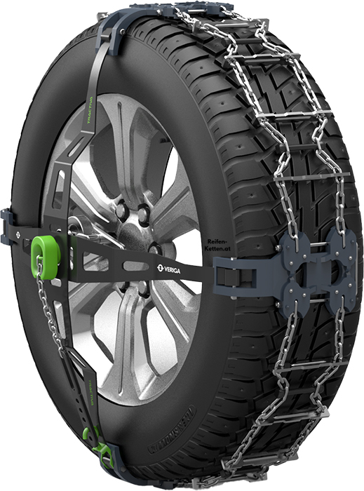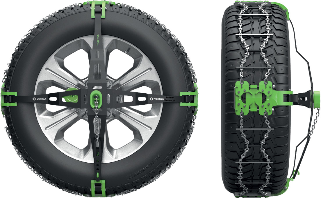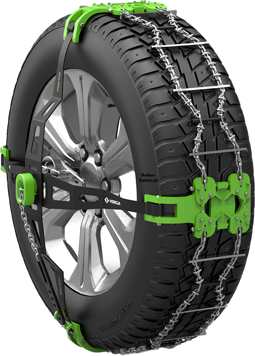 Die Veriga Tractiva ist ideal für die meisten modernen Autos. Sie ragt nicht in den Radkasten und eignet sich somit auch für Fahrzeuge, bei denen herkömmliche Ketten nicht montiert werden können, ohne das Getriebe oder Bremsen beeinträchtigt werden.